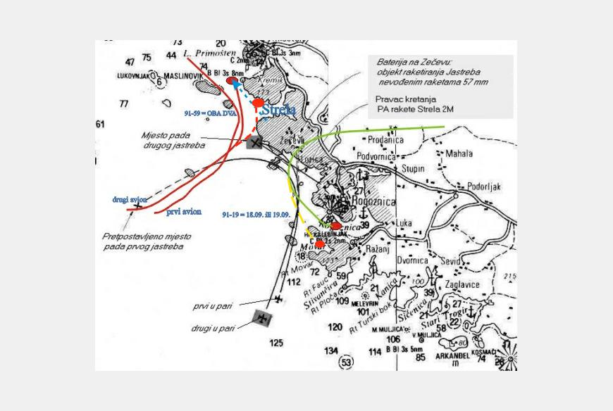 U vrijeme prvih ratnih mjeseci sada već daleke 1991. godine, Jugoslavensko ratno zrakoplovstvo masovno je koristilo jurišnike J-21 Jastreb za napade na postrojbe hrvatske vojske. Bilo je to vrijeme žestokih borbi za osvajanje vojarni od strane hrvatskih snaga, tada službenog naziva Zbor narodne garde (ZNG) uz istovremeno povlačenje postrojbi JNA iz priobalnog dijela Hrvatske. Tenkovi vojske JNA su s položaja blizu Šibenskog mosta otvorili vatru po gradu i prilazima gradu. Zrakoplovi su više puta bombardirali Šibenik i Vodice. Hrvatske snage su se žilavo branile, cijeli dan su trajale teške borbe, a prema neprovjerenim podacima srušena su tri zrakoplova i jedan helikopter JNA. Vojarne JNA su u potpunom okruženju.