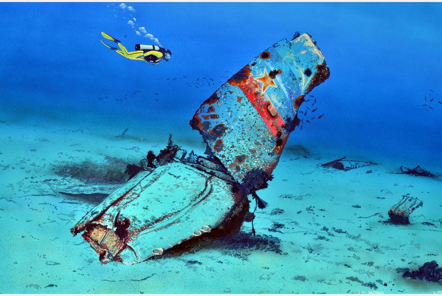 Na dubini od desetak metara dijelovi aviona mogu se uočiti i s površine